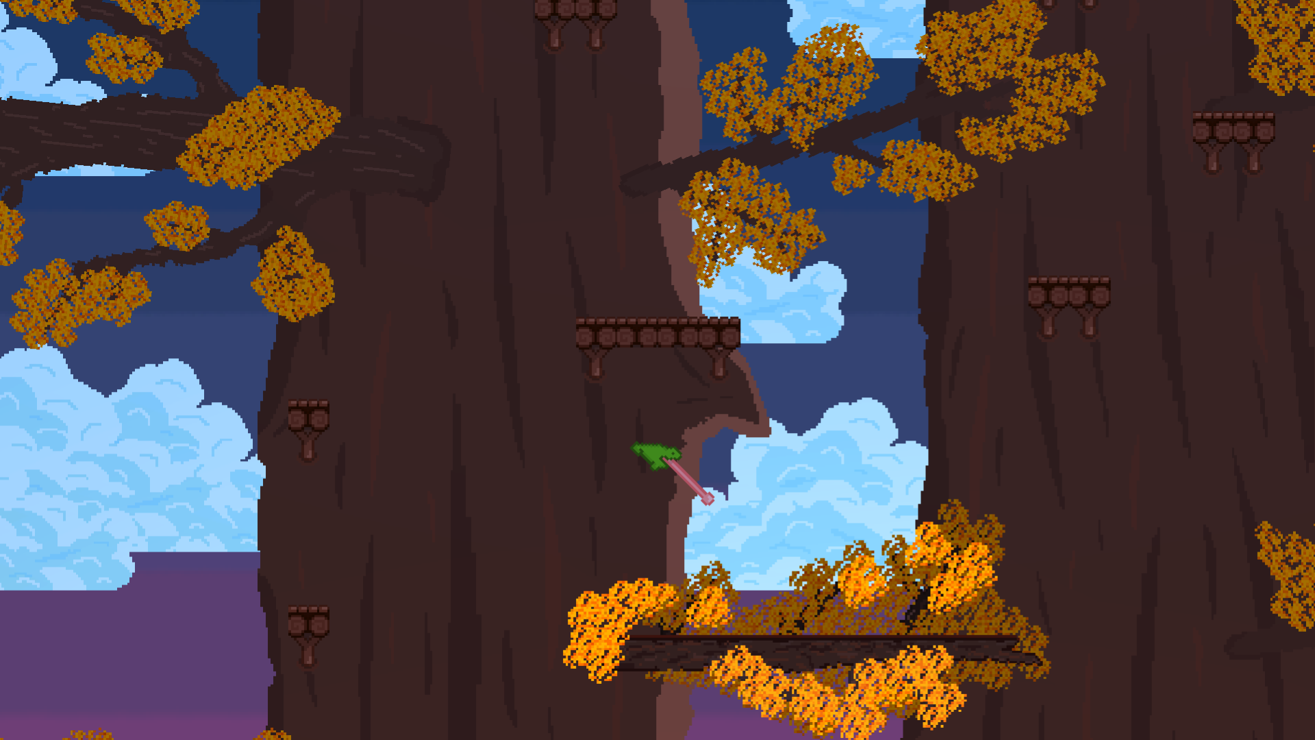 Sweet Game! I especially like the artwork and parallax effect in the background making the game cozy while beeing a pretty tough platformer!